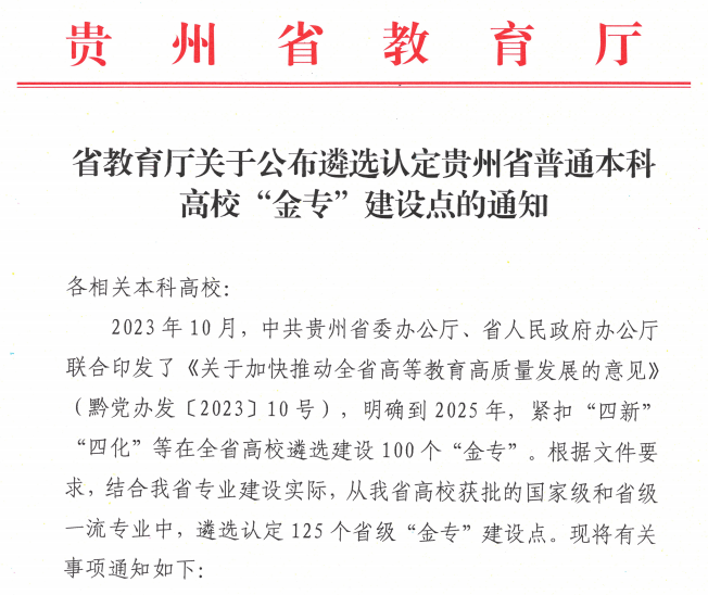 喜訊!我校四個專業入選貴州省“金專”建設點